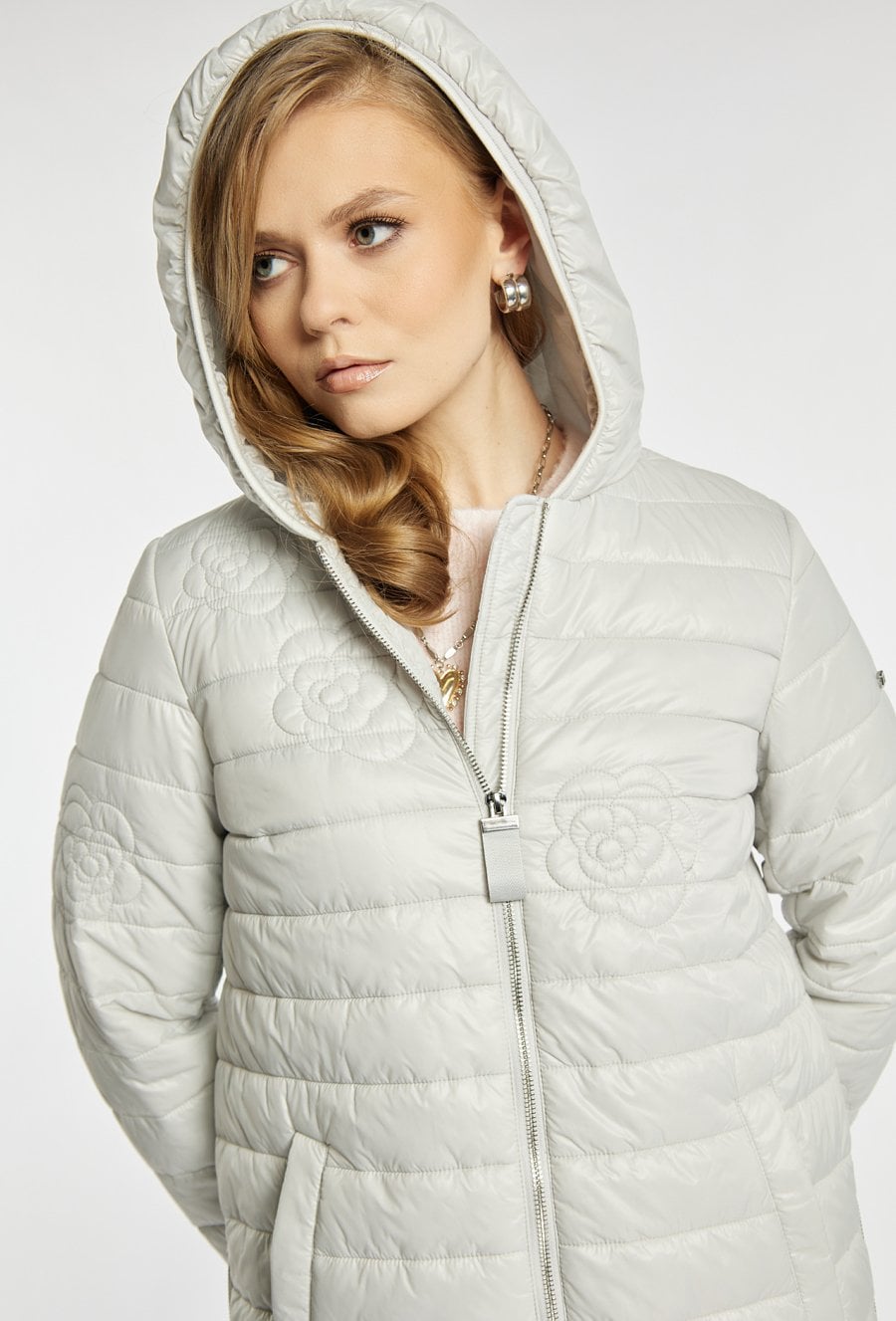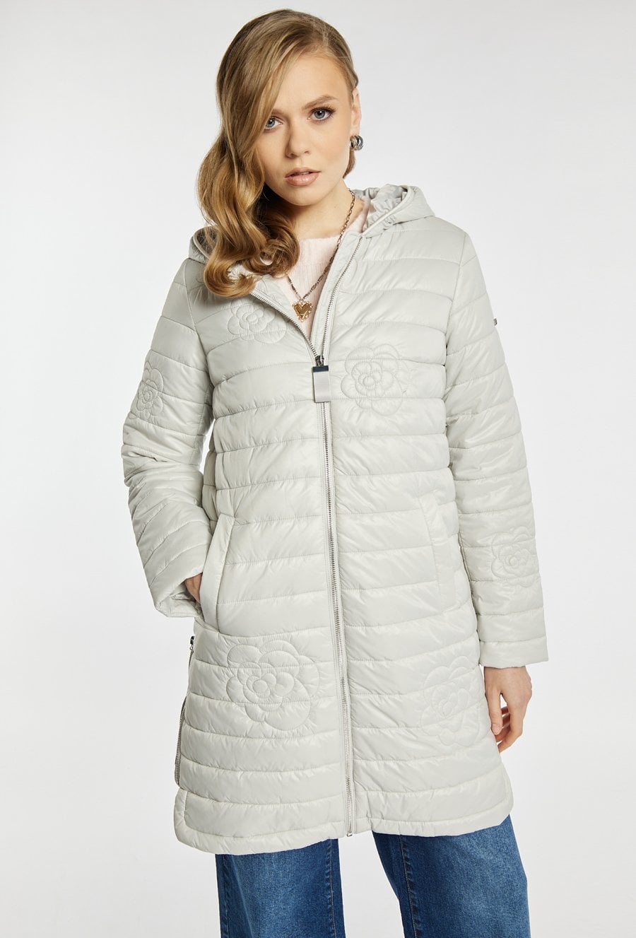 Pikowany płaszcz z kapturem