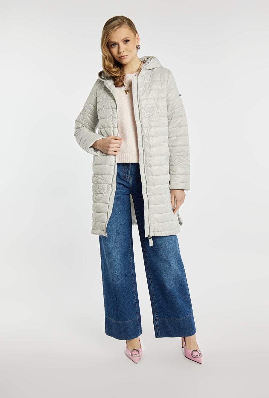 Długi, pikowany płaszcz