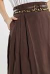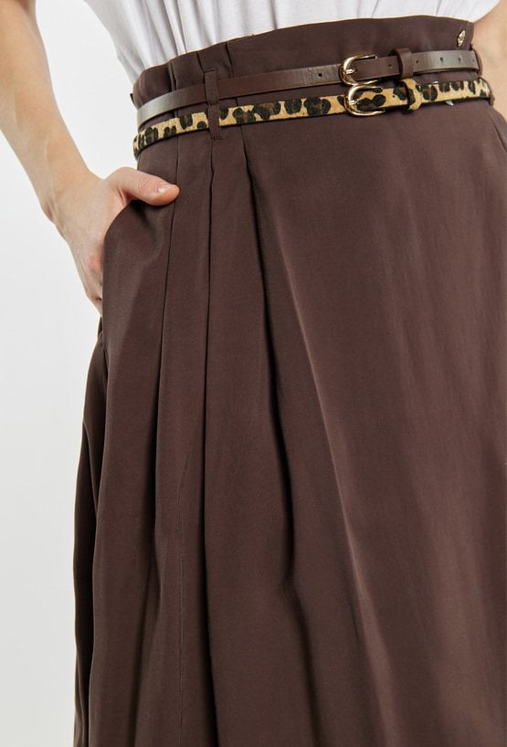 Prać ręcznie w temp.30°C osobno bez namaczania. Nie wybielać i nie chlorować. Prasować w temperaturze maksymalnej 110 °C po lewej stronie lub przez bawełniane płócienko. Nie czyścić chemicznie. Suszyć na wisząco na suszarce do odzieży. Nie suszyć w suszarce bębnowej. Prać wywrócone na lewą stronę. Pasek zdjąć do prania. Włókno celulozowe zawarte w materiale może powodować wykurcz produktu w procesie konserwacji. Zjawisko to jest naturalną cechą tego włókna.