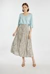Prać ręcznie w temp.30°C osobno bez namaczania. Nie wybielać i nie chlorować. Prasować w temperaturze maksymalnej 110 °C po lewej stronie lub przez bawełniane płócienko. Nie czyścić chemicznie. Suszyć na wisząco na suszarce do odzieży. Nie suszyć w suszarce bębnowej. Prać wywrócone na lewą stronę. Włókno celulozowe zawarte w materiale może powodować wykurcz produktu w procesie konserwacji. Zjawisko to jest naturalną cechą tego włókna.