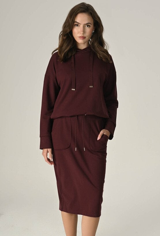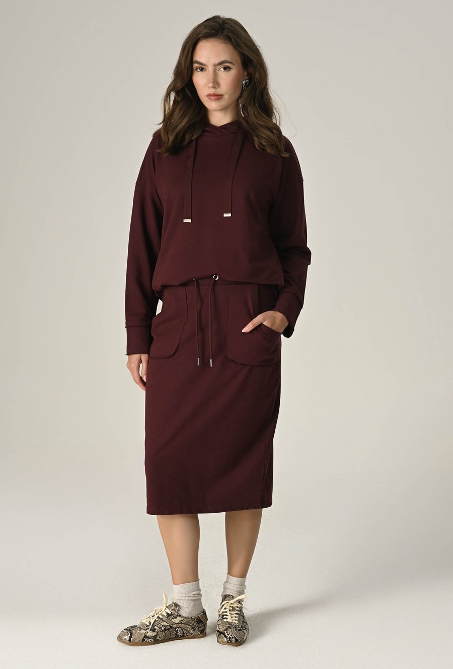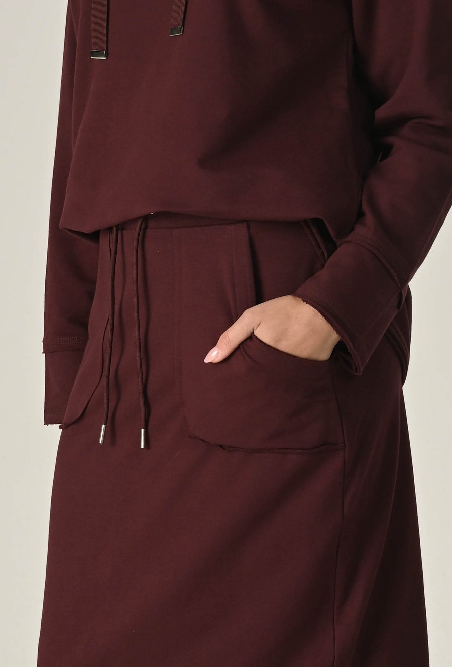Bawełniana, wygodna spódnica midi to idealna propozycja dla kobiet ceniących sobie wygodę i styl. Elastyczna guma w pasie gwarantuje idealne dopasowanie do Twojej sylwetki, a kieszenie dodają funkcjonalności. Wykonana z przyjemnej, bawełnianej dzianiny zapewni Ci komfort noszenia przez cały dzień, a surowe wykończenie nadaje modowego charakteru. Spódnica świetnie sprawdzi się w codziennych stylizacjach. Modelka na zdjęciu ma 173 cm wzrostu i prezentuje rozmiar 36.