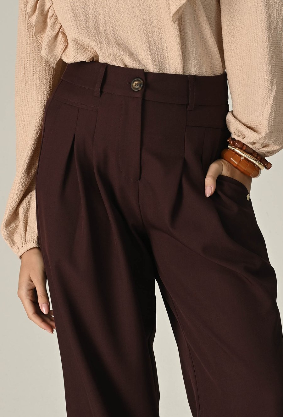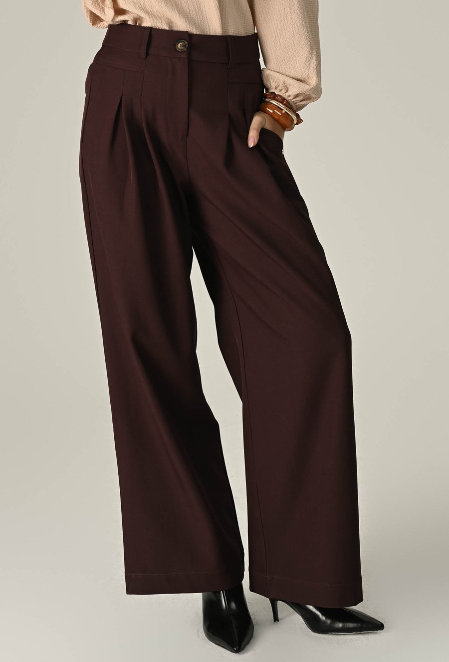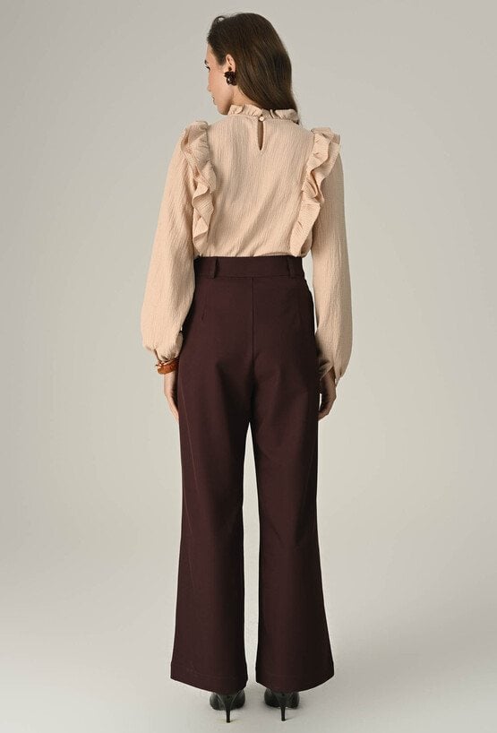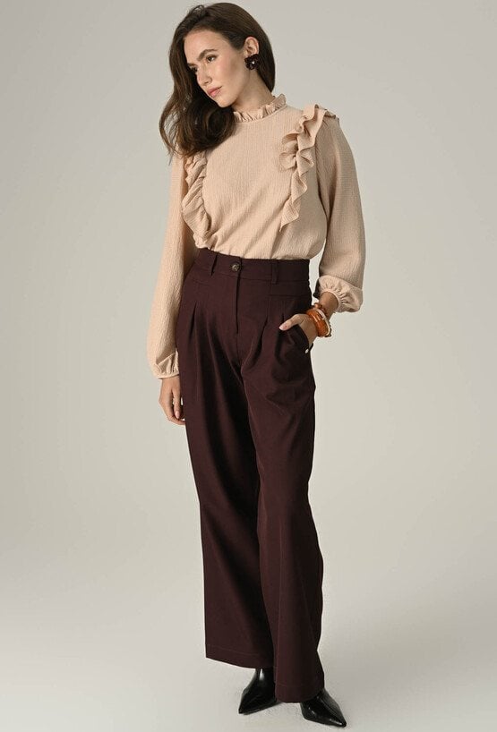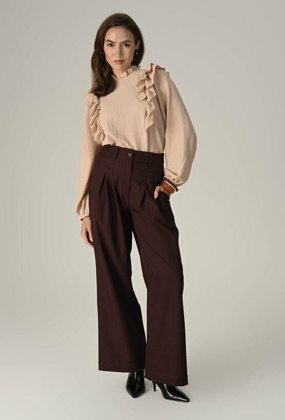 Bordowe spodnie z szeroką nogawką