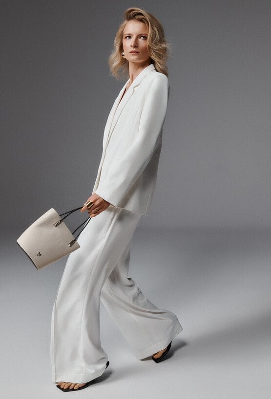 Spodnie damskie o eleganckim, klasycznym kroju. Model z wysokim stanem oraz szerokimi, prostymi nogawkami, które optycznie wydłużają sylwetkę i nadają stylizacji nowoczesnego charakteru. Minimalistyczny fason sprawia, że spodnie doskonale układają się na sylwetce i zapewniają komfort noszenia.