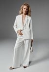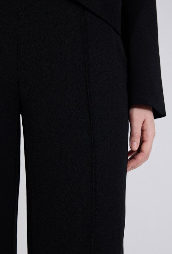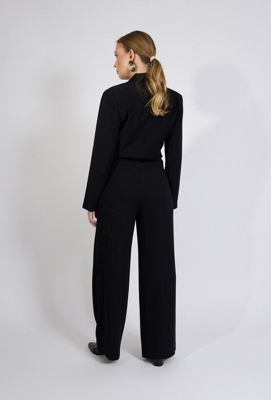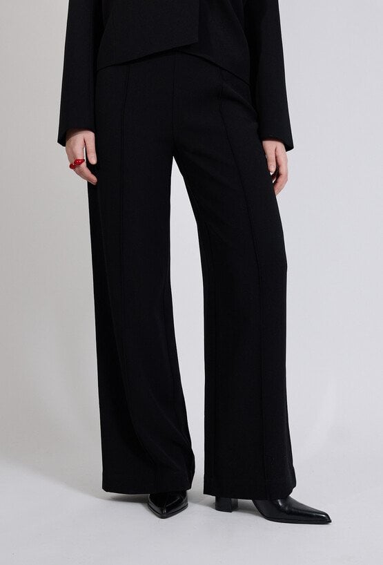 Spodnie damskie o eleganckim, klasycznym kroju. Model z wysokim stanem oraz szerokimi, prostymi nogawkami, które optycznie wydłużają sylwetkę i nadają stylizacji nowoczesnego charakteru. Minimalistyczny fason sprawia, że spodnie doskonale układają się na sylwetce i zapewniają komfort noszenia.