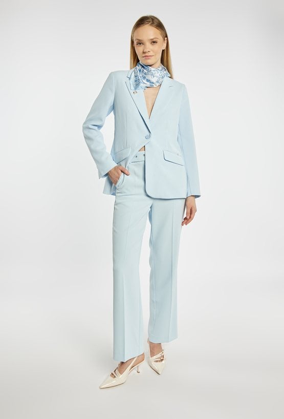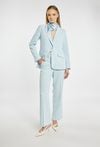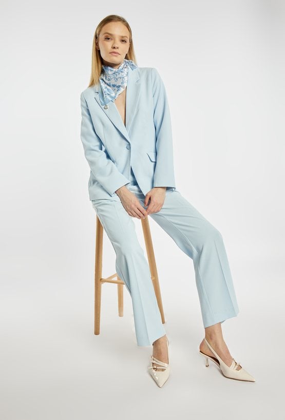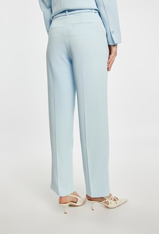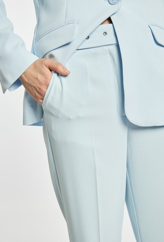 Spodnie damskie o eleganckim, prostym kroju. Model z wysokim stanem i długimi nogawkami, które optycznie wydłużają sylwetkę. Doskonale sprawdzą się w stylizacjach biurowych i okazjonalnych. Można je zestawić z pasującą marynarką, tworząc stylowy garnitur damski. Kod do marynarki: 26W-BZR0210. Modelka na zdjęciu ma 177 cm wzrostu i prezentuje rozmiar 36.