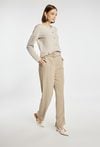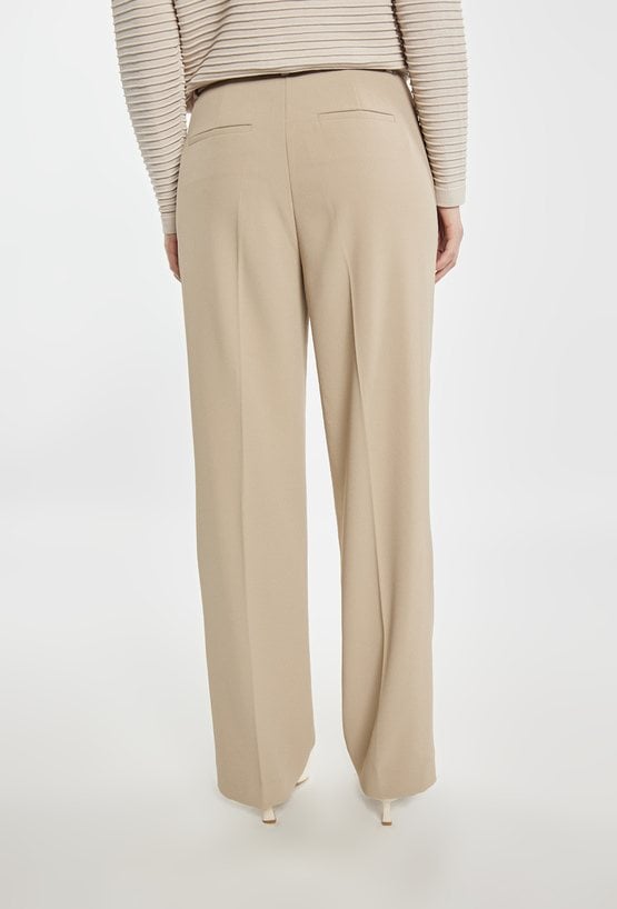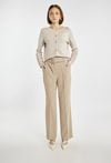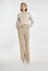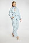 Spodnie damskie o eleganckim, prostym kroju. Model z wysokim stanem i długimi nogawkami, które optycznie wydłużają sylwetkę. Doskonale sprawdzą się w stylizacjach biurowych i okazjonalnych. Można je zestawić z pasującą marynarką, tworząc stylowy garnitur damski. Kod do marynarki: 26W-BZR0210. Modelka na zdjęciu ma 177 cm wzrostu i prezentuje rozmiar 36.