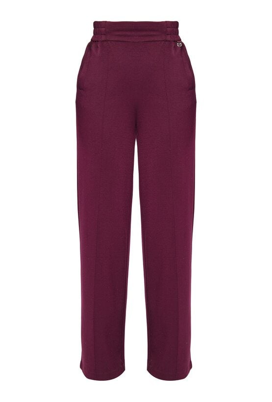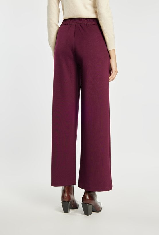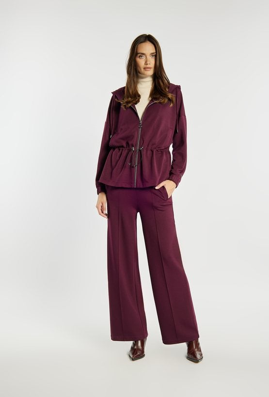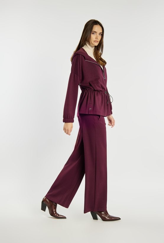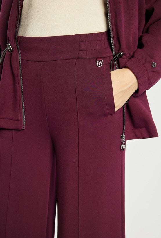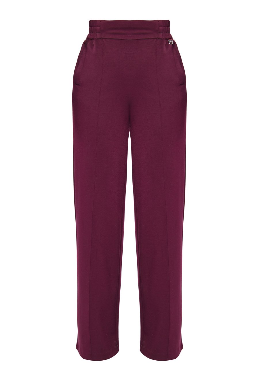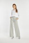 Spodnie damskie z szeroką nogawką. Spodnie z klasycznym stanem, ozdobnymi przeszyciami z przodu oraz praktycznymi kieszeniami. Elegancki fason sprawia, że spodnie świetnie komponują się zarówno z bluzkami, jak i marynarkami, tworząc stylizacje idealne do pracy i na co dzień. Modelka na zdjęciu ma 177 cm wzrostu i prezentuje rozmiar S