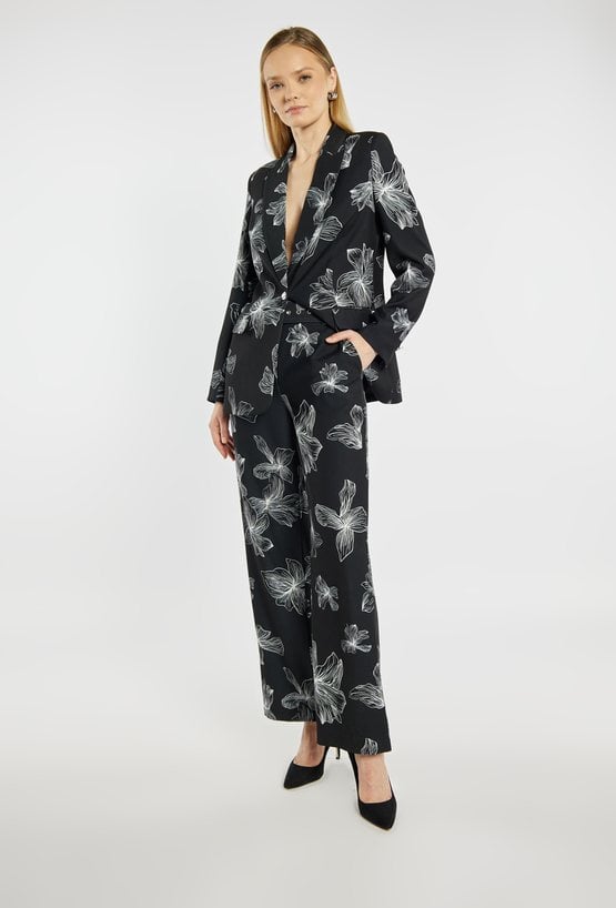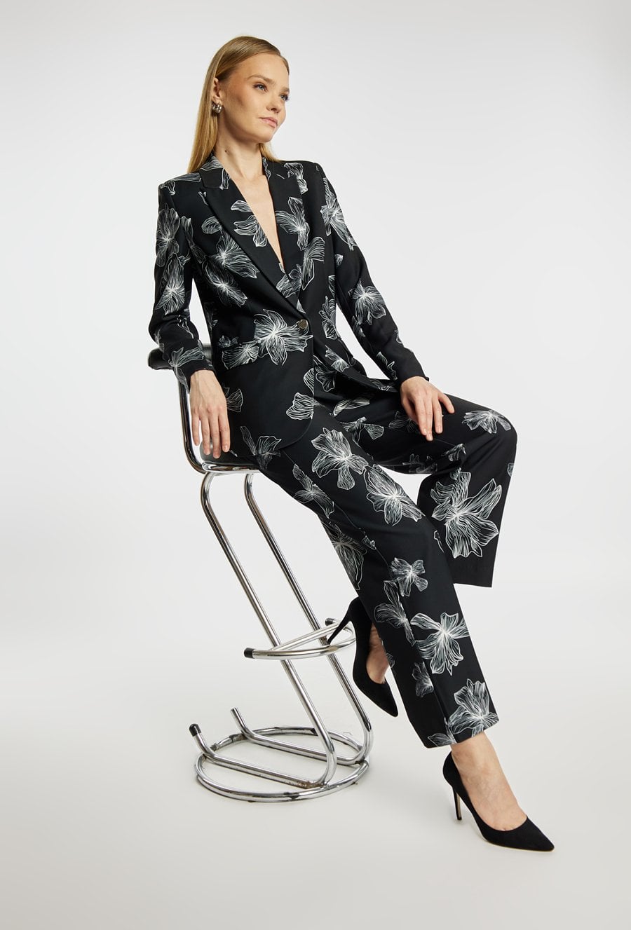 Spodnie damskie o eleganckim, prostym kroju. Model z wyższym stanem i długimi nogawkami, które optycznie wydłużają sylwetkę. Idealne do stylizacji biurowych i na większe wyjścia. Można je zestawić z pasującą marynarką, tworząc stylowy garnitur damski. Kod do marynarki: 26W-BZR0031. Modelka na zdjęciu ma 177 cm wzrostu i prezentuje rozmiar 36