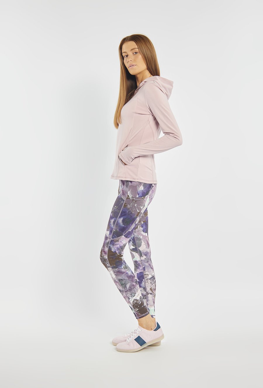 Legginsy z kolekcji Joy&Relax w kwiatowy wzór. Elastyczny materiał zapewnia komfort i swobodę ruchów, a szeroki pas dobrze dopasowuje się do sylwetki. Model z praktycznymi bocznymi kieszeniami, które dodają funkcjonalności. Idealne do zestawów sportowych i codziennych. Modelka na zdjęciu ma 177 cm wzrostu i prezentuje rozmiar S.