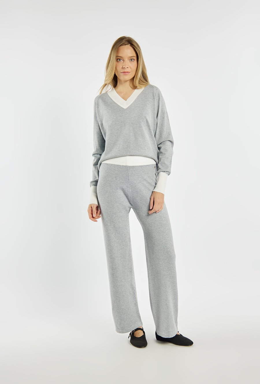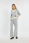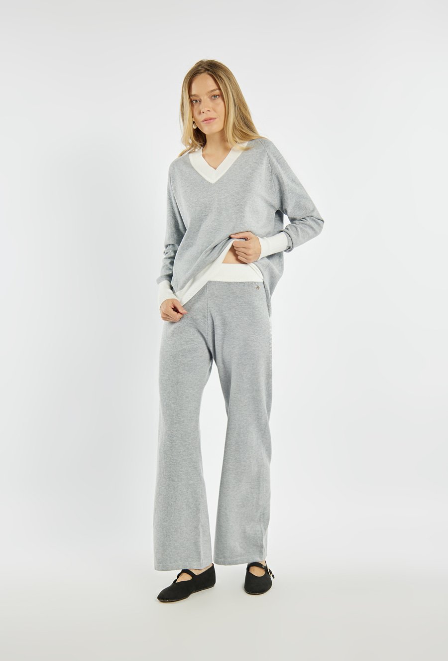 Spodnie damskie o prostym, luźnym kroju, zapewniające pełen komfort noszenia. Idealne na co dzień – doskonale sprawdzą się zarówno w domowych stylizacjach, jak i w casualowych zestawach z golfem lub swetrem. Modelka na zdjęciu ma 177 cm wzrostu i prezentuje rozmiar S/M.