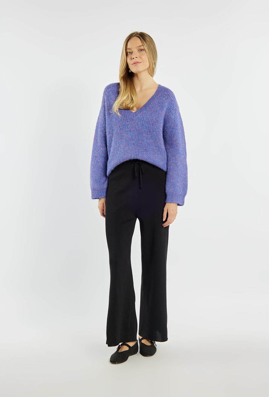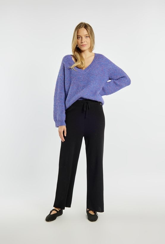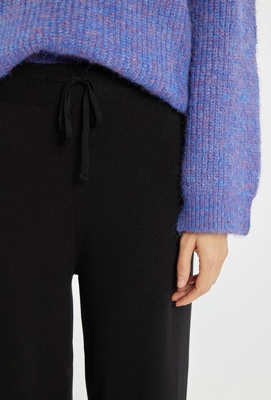 Spodnie damskie o prostym kroju. W pasie elastyczna guma ze sznurkiem umożliwiająca regulację obwodu. Minimalistyczny design sprawia, że doskonale sprawdzą się zarówno w domowych stylizacjach, jak i w casualowych zestawach na co dzień. Modelka na zdjęciu ma 177 cm wzrostu i prezentuje rozmiar S/M.