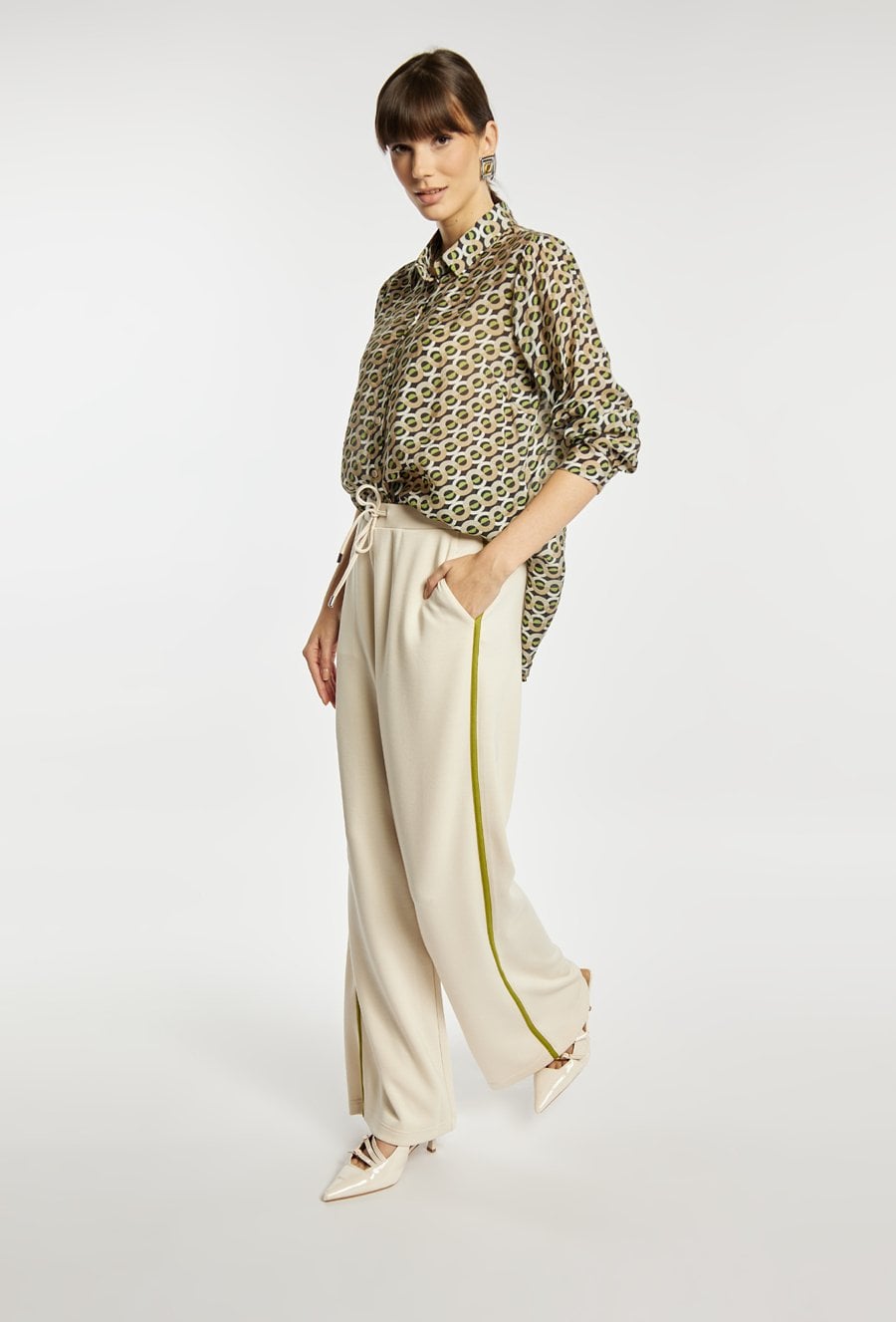 Wzorzyste spodnie z luźnymi nogawkami