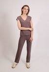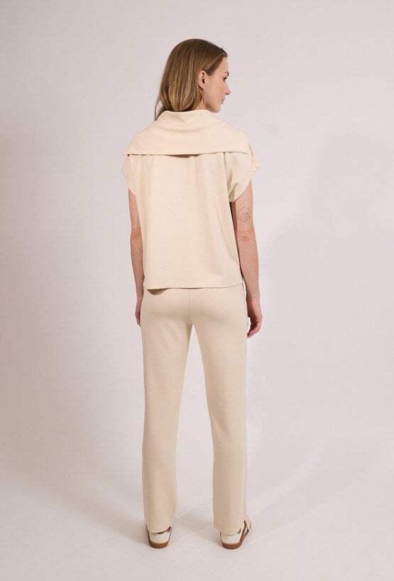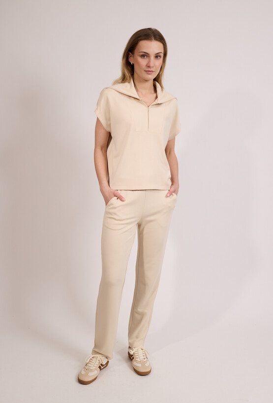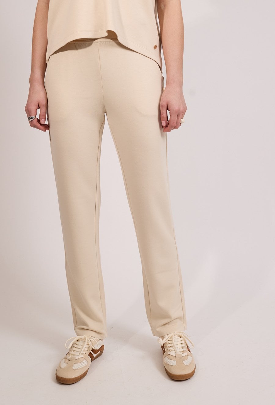 Spodnie damskie o prostym kroju. Model zapewnia wygodę noszenia i swobodę ruchów, doskonale dopasowując się do sylwetki. Spodnie świetnie sprawdzą się w codziennych i casualowych stylizacjach, gwarantując komfort i modny wygląd. Modelka na zdjęciu ma 177 cm wzrostu i prezentuje rozmiar S.