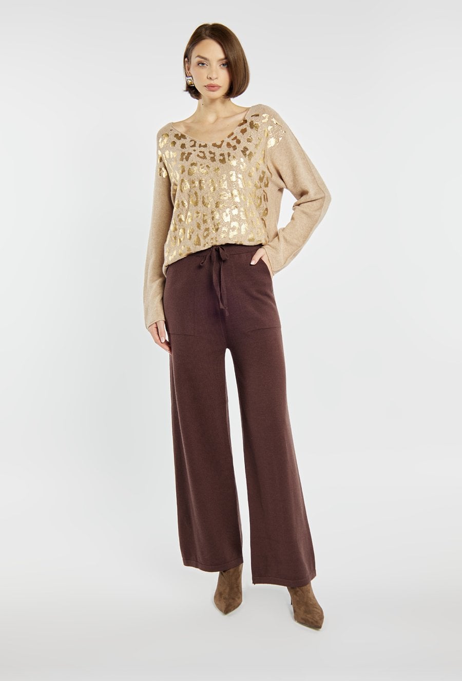 Wzorzyste spodnie z luźnymi nogawkami