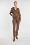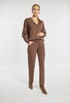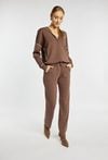 Spodnie o prostym, lekko rozszerzanym kroju, idealne na co dzień i do wygodnych stylizacji. Spodnie z długą nogawką i elastyczną talią ze sznurkiem. Można je zestawić ze swetrem w tym samym kolorze, tworząc stylowy komplet. Kod do swetra: 26W-SWE0140, Modelka na zdjęciu ma 177 cm wzrostu i prezentuje rozmiar S.