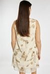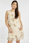 Elegancka sukienka damska mini bez rękawów z delikatnym kwiatowym wzorem. Model o prostym kroju z lekkiego, zwiewnego materiału zapewnia komfort i elegancki wygląd. Sukienka doskonale sprawdzi się na komunię, rodzinne przyjęcia, spotkania oraz inne uroczystości. Modelka na zdjęciu ma 177 cm wzrostu i prezentuje rozmiar 36.
