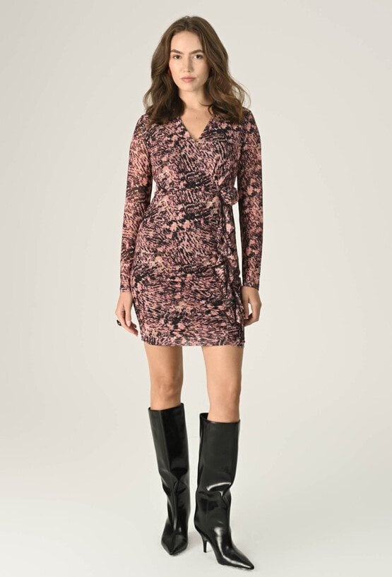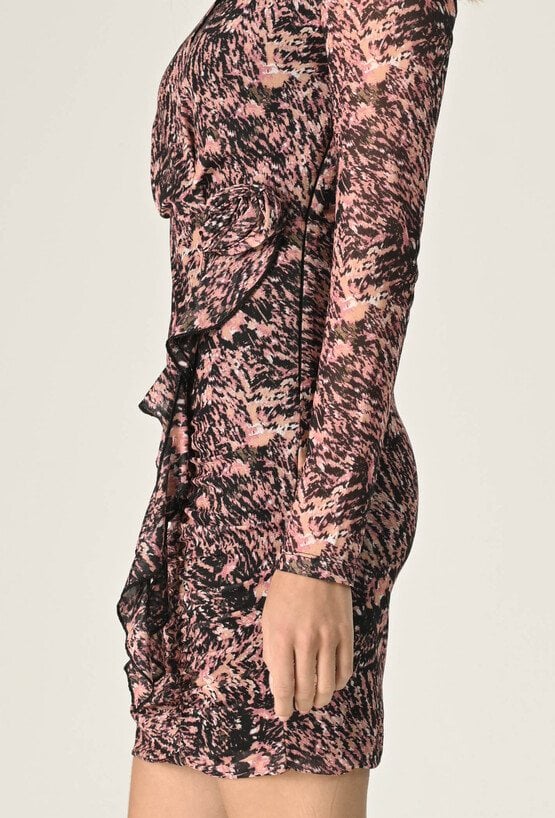 Krótka, dopasowana sukienka damska z piękną kwiatową aplikacją na przodzie. Zamek kryty z boku sprawia, że sukienka jest łatwa do założenia, a jej kobiecy krój podkreśla sylwetkę. Doskonała na specjalne okazje i eleganckie wieczory. Modelka na zdjęciu ma 174 cm wzrostu i prezentuje rozmiar 36.