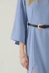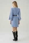 Niebieska sukienka z paskiem i rękawem 3/4