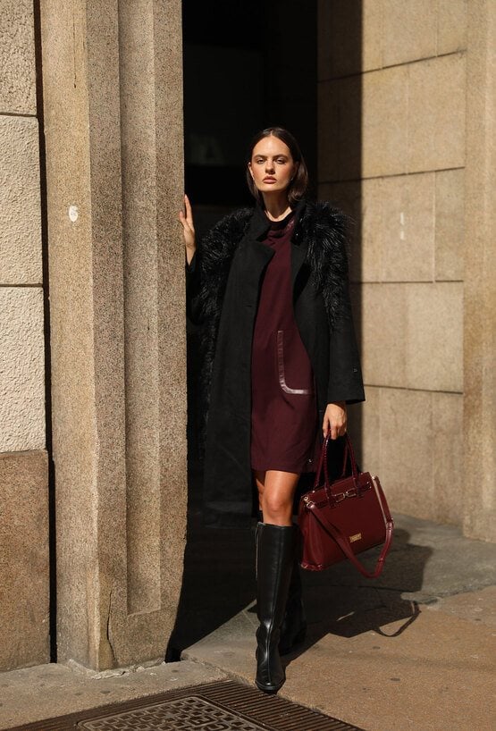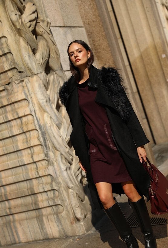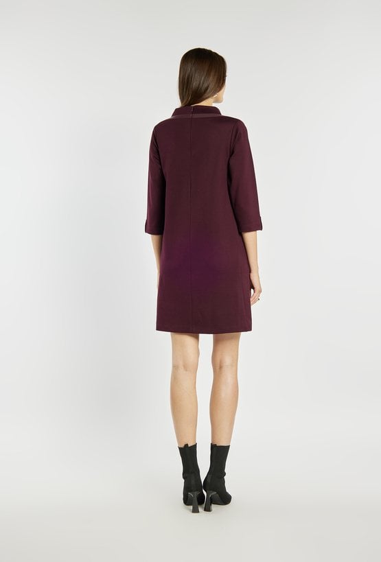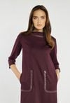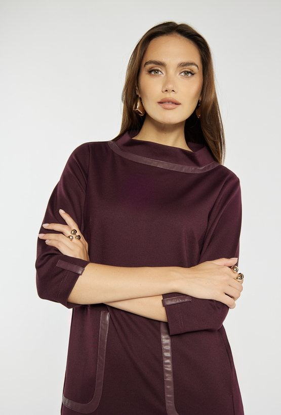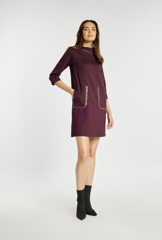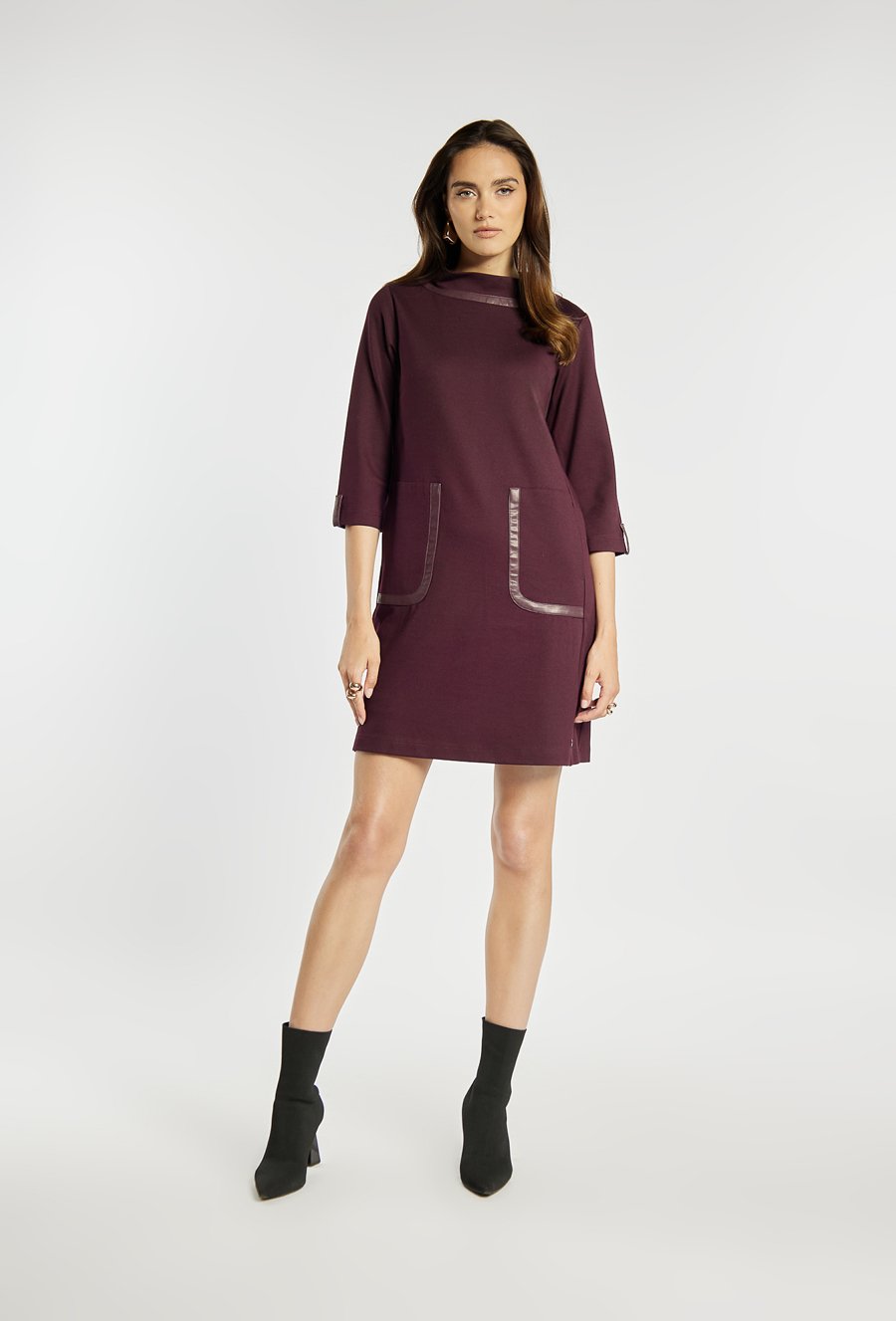 Stylowa sukienka mini o prostym, luźnym kroju to doskonały wybór na co dzień i do pracy. Sukienka z rękawem 3/4 i zabudowanym dekoltem zapewnia komfort noszenia i nowoczesny wygląd. Naszywane kieszenie z ozdobną lamówką dodają całości funkcjonalności i charakteru. Modelka na zdjęciu ma 177 cm wzrostu i prezentuje rozmiar 36.