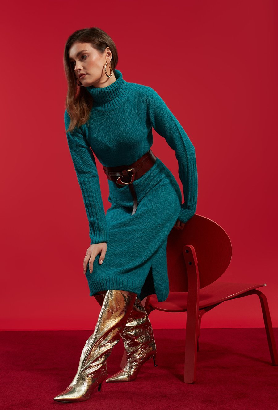 Dzianinowa sukienka z golfem