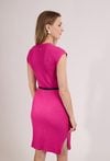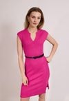 Stylowa sukienka damska o dopasowanym kroju z krótkim rękawem. Model z dekoltem w kształcie litery V oraz prążkowaną strukturą materiału, która podkreśla sylwetkę. Sukienka doskonale sprawdzi się w codziennych i letnich stylizacjach, na spotkania oraz wyjścia. Modelka na zdjęciu ma 177 cm wzrostu i prezentuje rozmiar S.