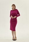 Sukienka w klasycznym czarnym kolorze z luźną górą i dopasowanym dołem. z nietoperzowymi rękawami ¾ . Posiada gumę podkreślającą talię oraz drapowanie nadające interesujący krój. Delikatna i miękka tkanina gwarantuje komfort-noszenia a sukienka idealnie sprawdzi się na co dzień jako baza stylizacji. Modelka na zdjęciu ma 175 cm wzrostu i prezentuje rozmiar 36.