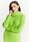 Swetrowa sukienka damska midi z golfem. Sukienka z długimi rękawami, wykonana z przyjemnej w dotyku tkaniny. Sukienka występuje w dwóch pięknych wariantach kolorystycznych i świetnie nada charakteru codziennych stylizacjom. Modelka na zdjęciu ma 177 cm wzrostu i prezentuje rozmiar 36.