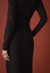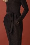 Sukienka z połyskującą nicią wiązana w pasie
