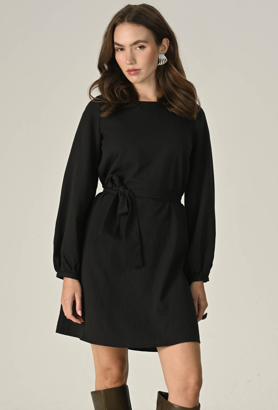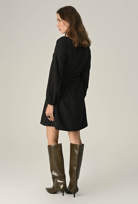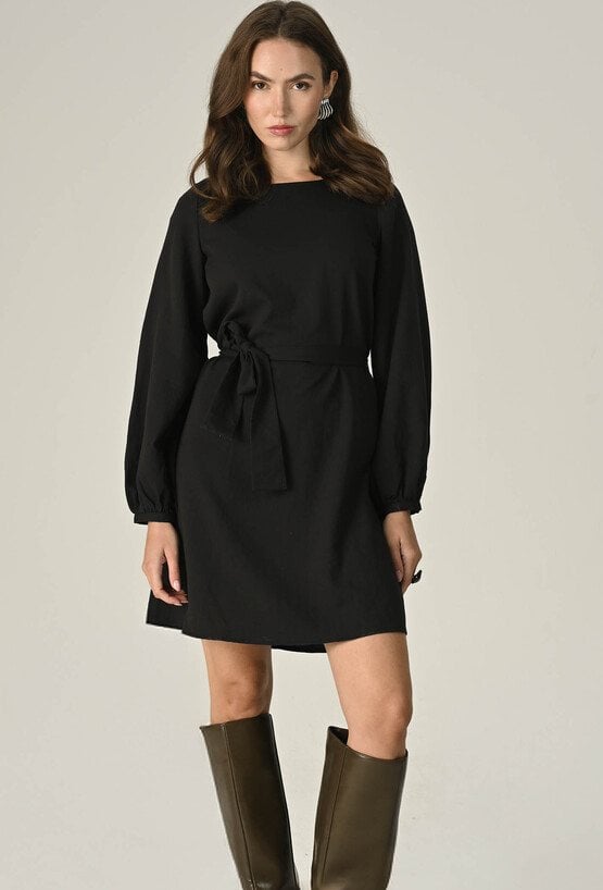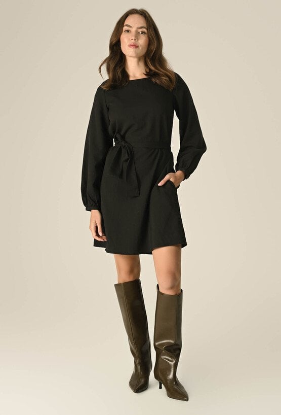 Damska sukienka w codziennym stylu, wykonana z miękkiego syntetycznego materiału. Kieszenie i pasek w talii dają jej praktyczność i elegancję, a zamek z tyłu sprawia, że zakładanie sukienki jest szybkie i wygodne. Modelka na zdjęciu ma 174 cm wzrostu i prezentuje rozmiar 36.