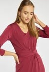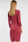 Elegancka sukienka o kobiecym kroju z delikatnym marszczeniem i subtelnym wiązaniem w talii, które świetnie podkreśla sylwetkę. Klasyczny dekolt i rękaw 3/4 dodają jej ponadczasowego charakteru, a długość do kolan sprawia, że sprawdzi się na co na specjalne okazje. Modelka na zdjęciu ma 177 cm wzrostu i prezentuje rozmiar S.