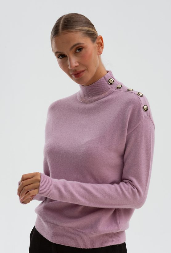 Liliowy sweter z ozdobnymi guzikami