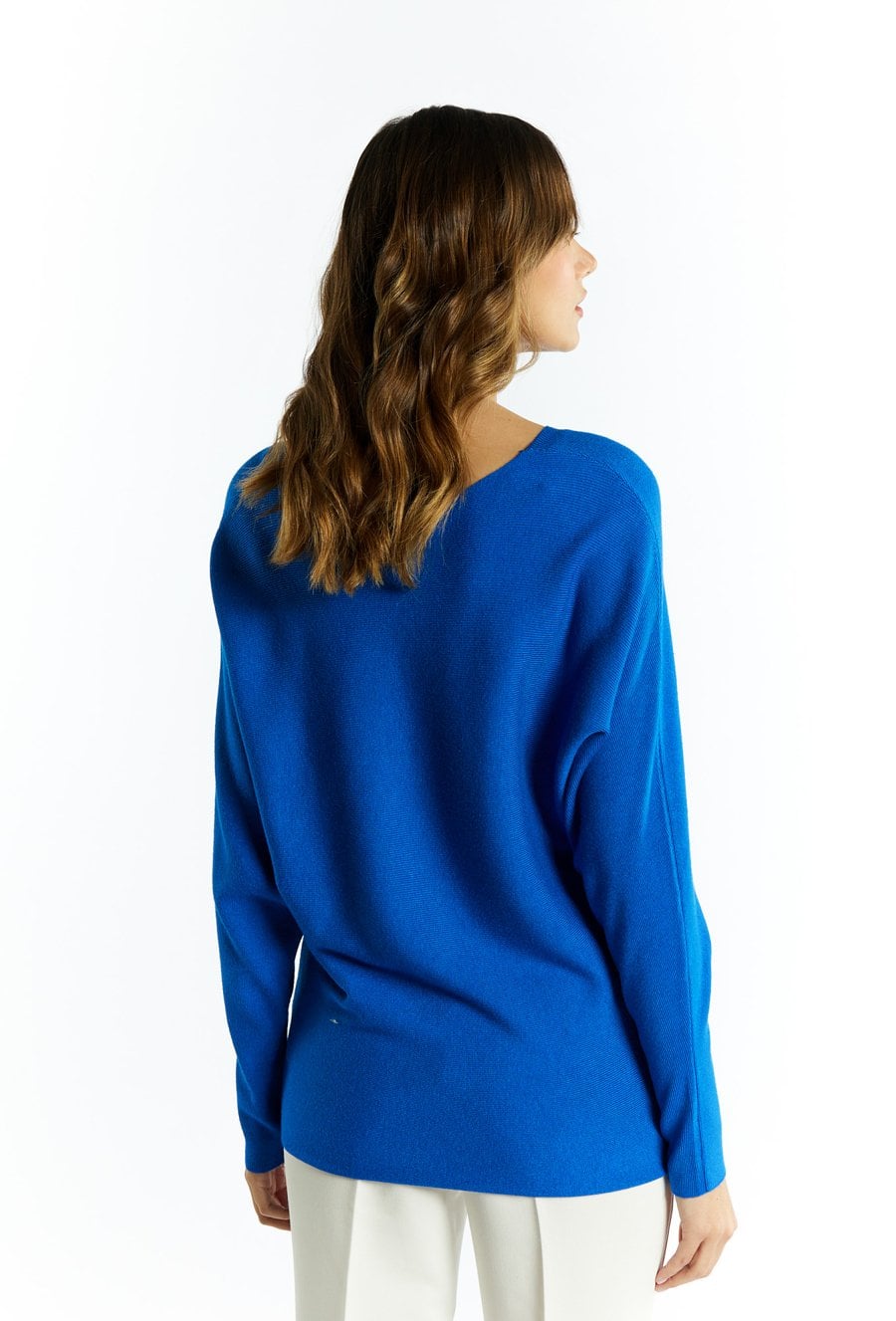 Sweter damski wykonany z przyjemnego w dotyku materiału. Sweter z długimi rękawami oraz półokrągłym dekoltem. Z przodu znajdują się małe dżetowe wzory w postaci logo marki Monnari. Model ten świetnie sprawdzi się na co dzień. Modelka na zdjęciu ma 177 cm wzrostu i prezentuje rozmiar S/M.