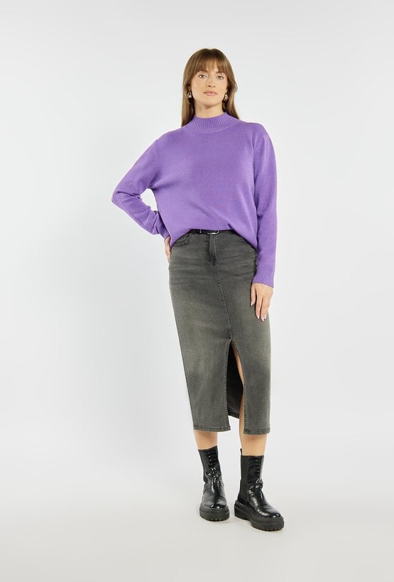 Sweter o prostym, klasycznym kroju i delikatnie podniesionym dekolcie to miękka i komfortowa propozycja na co dzień. Sweter dostępny jest również w innych wariantach kolorystycznych, dzięki czemu łatwo dopasujesz go do własnego stylu. Modelka na zdjęciu ma 177 cm wzrostu i prezentuje rozmiar S/M.