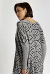 Sweter damski o swobodnym kroju z wzorem w litery oraz z cekinami. Sweter wykonany z przyjemnego w dotyku materiału z półokrągłym dekoltem oraz długimi rękawami. Model ten występuje w wielu wariantach kolorystycznych i świetnie sprawdzi się na co dzień. Modelka na zdjęciu ma 177 cm wzrostu i prezentuje rozmiar 36.