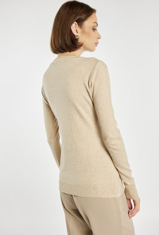 Sweter damski z biżuteryjną agrafką