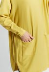 Sweter damski o dłuższym kroju, wykonany z przyjemnego w dotyku materiału. Sweter z długimi rękawami oraz półokrągłym dekoltem, z przodu znajdują się naszyte kieszonki, z tyłu znajduje się listwa ozdobnych guzików. Model ten występuje w wielu wariantach kolorystycznych i świetnie sprawdzi się na co dzień. Modelka na zdjęciu ma 177 cm wzrostu i prezentuje rozmiar 36.