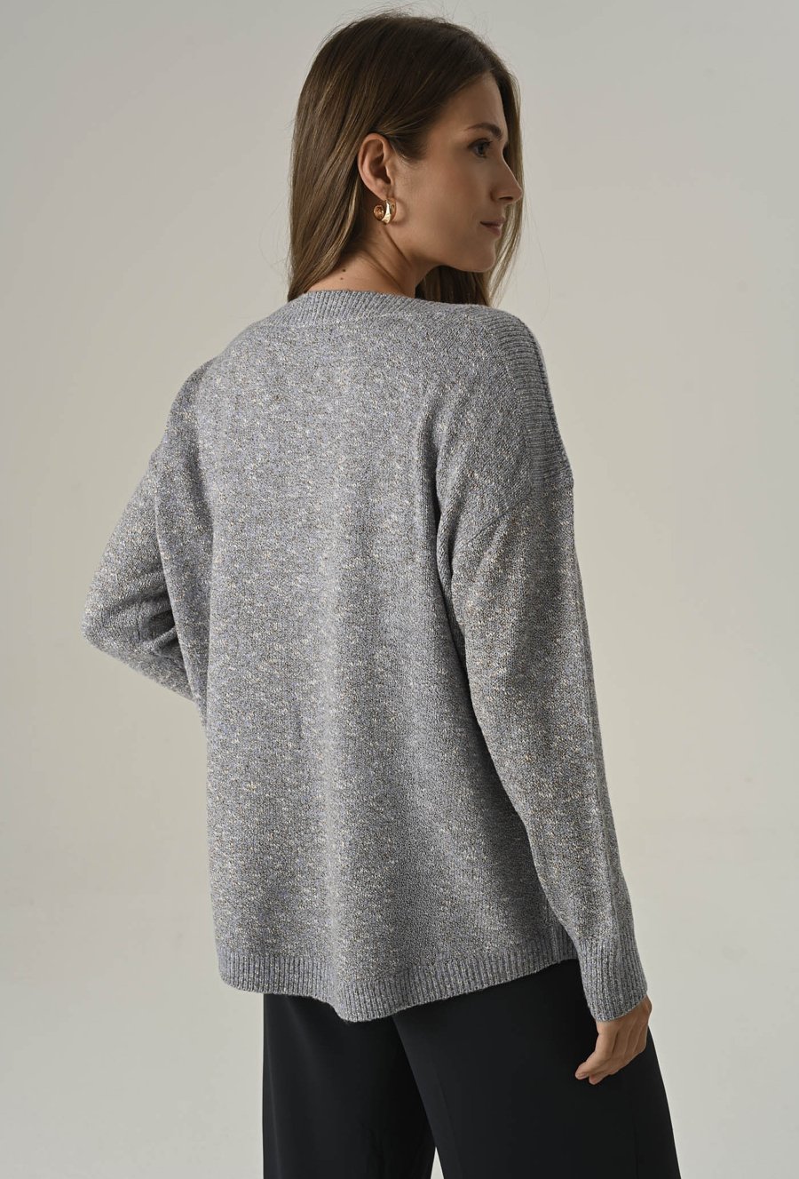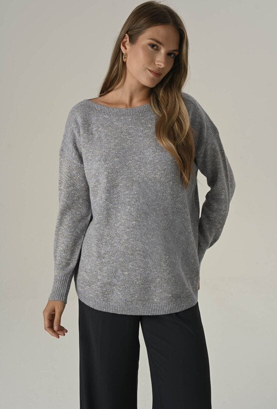 Sweter z miękkiej przędzy w metaliczną nicią