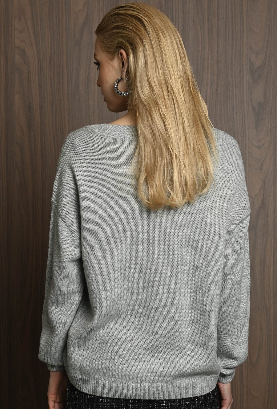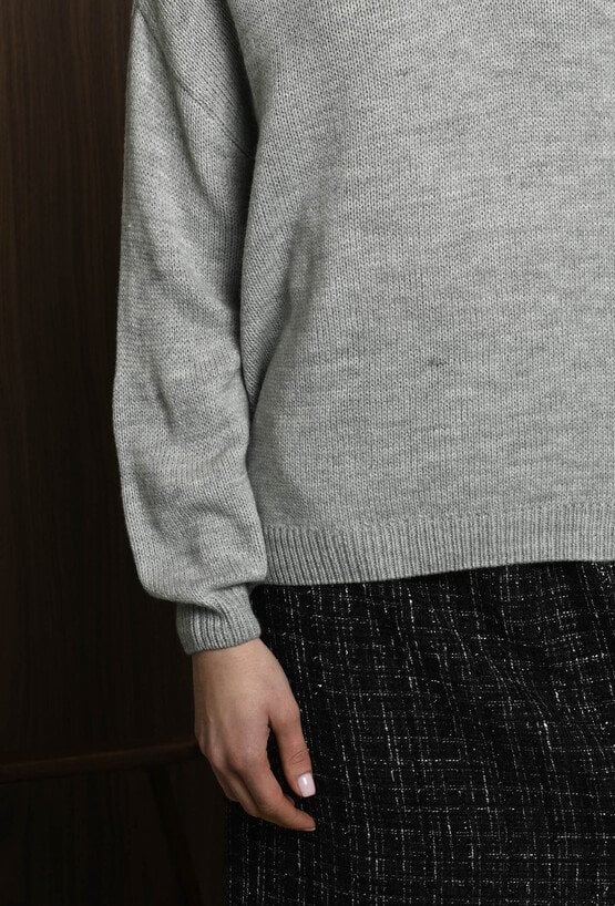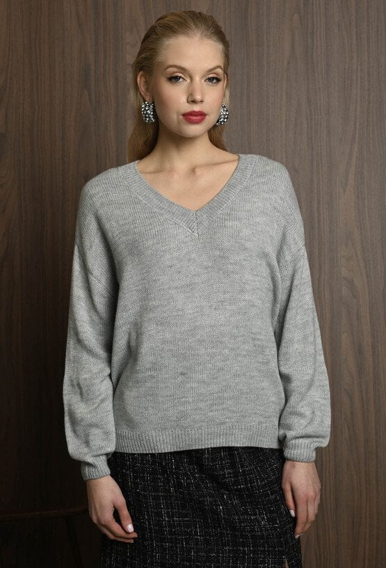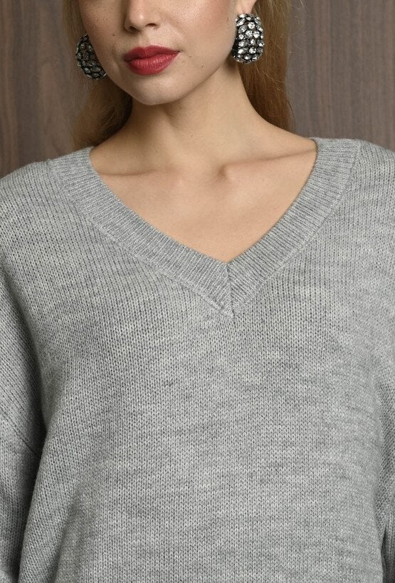 Efektowny sweter o grubym splocie, doskonale sprawdzi się na jesienne wieczory. Ma luźny fason z obniżoną linia ramion oraz dekolt w literę V. Sweter wykonany jest z miłej w dotyku dzianiny. Dostępny w trzech wersjach kolorystycznych. Modelka na zdjęciu ma 177 cm wzrostu i prezentuje rozmiar 36/S.