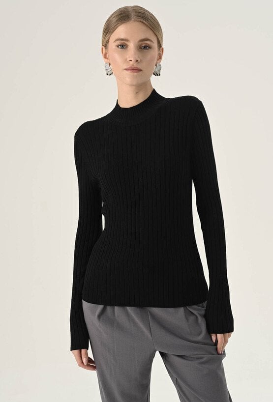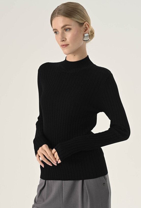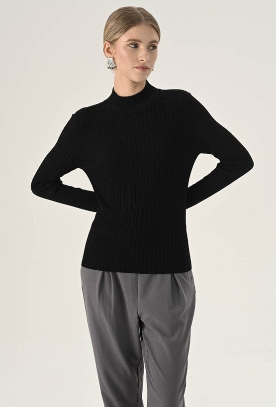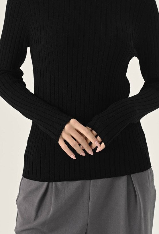 Dopasowany czarny golf w prążek