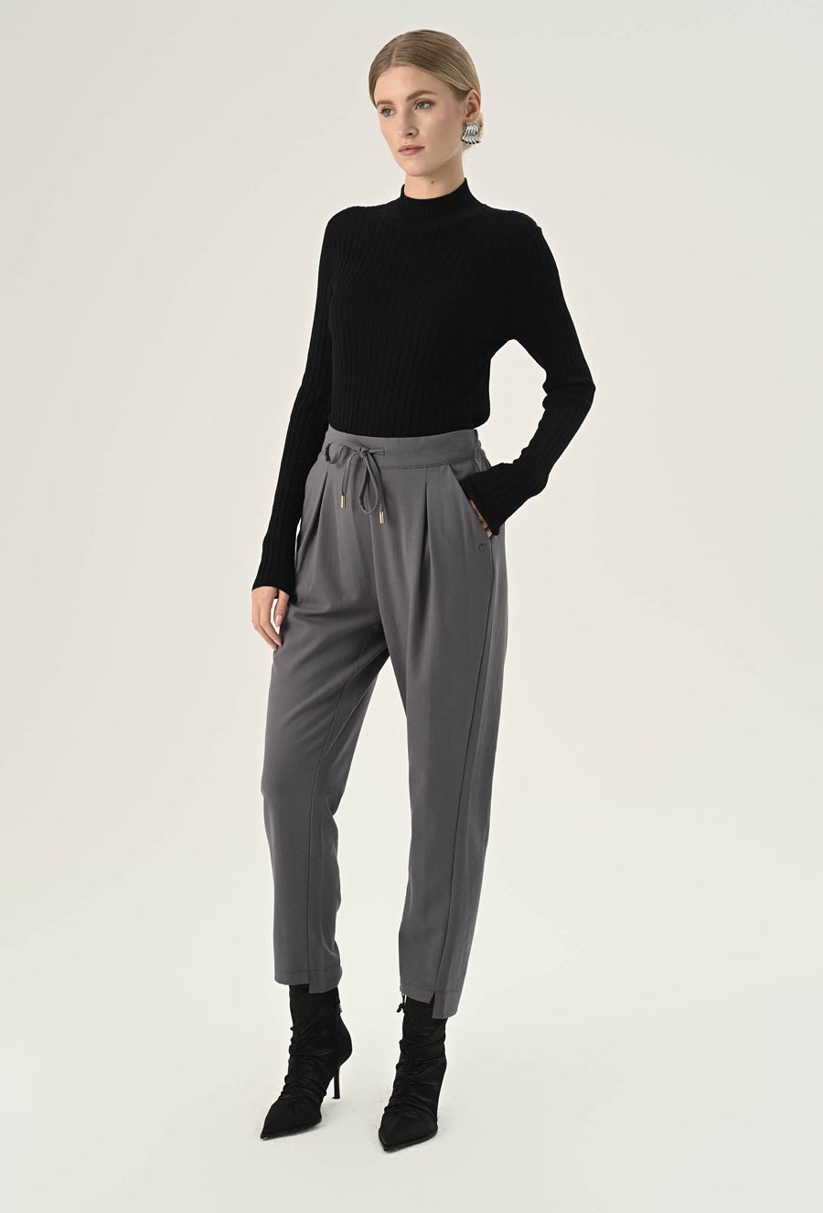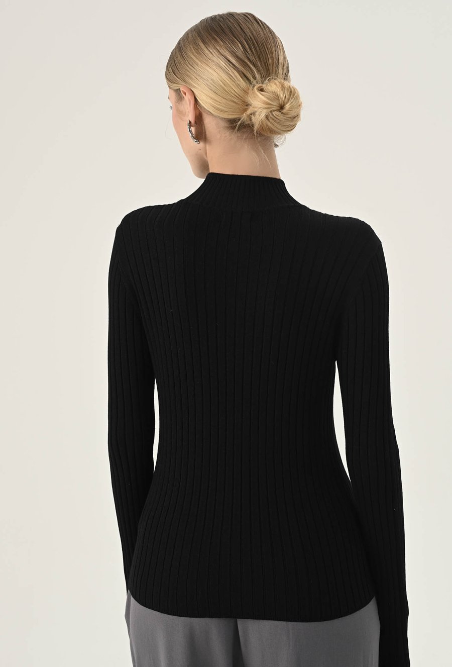 Dopasowany golf z subtelnym prążkowaniem, to absolutny klasyk z charakterem — prosty, ale niezwykle efektowny element garderoby, który można interpretować na wiele sposobów. Klasyczny fason sprawdzi się jako uniwersalna baza wielu stylizacji – zarówno casualowych, jak i bardziej eleganckich. Komfortowy, ponadczasowy i łatwy do zestawiania z innymi elementami garderoby. Wykonany z przyjemnej w dotyku wiskozy. Modelka na zdjęciu ma 177cm wzrostu i prezentuje rozmiar 36.