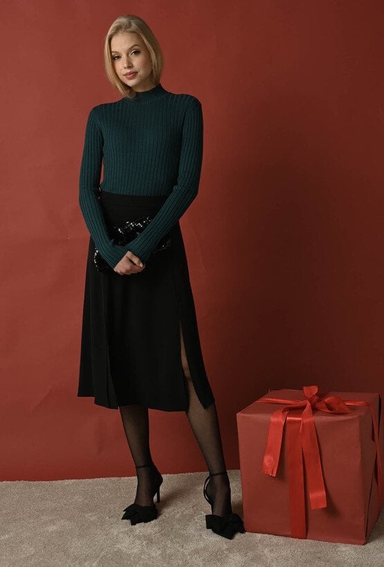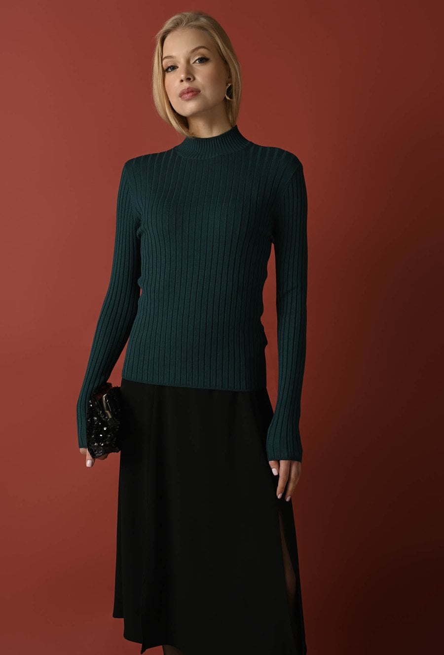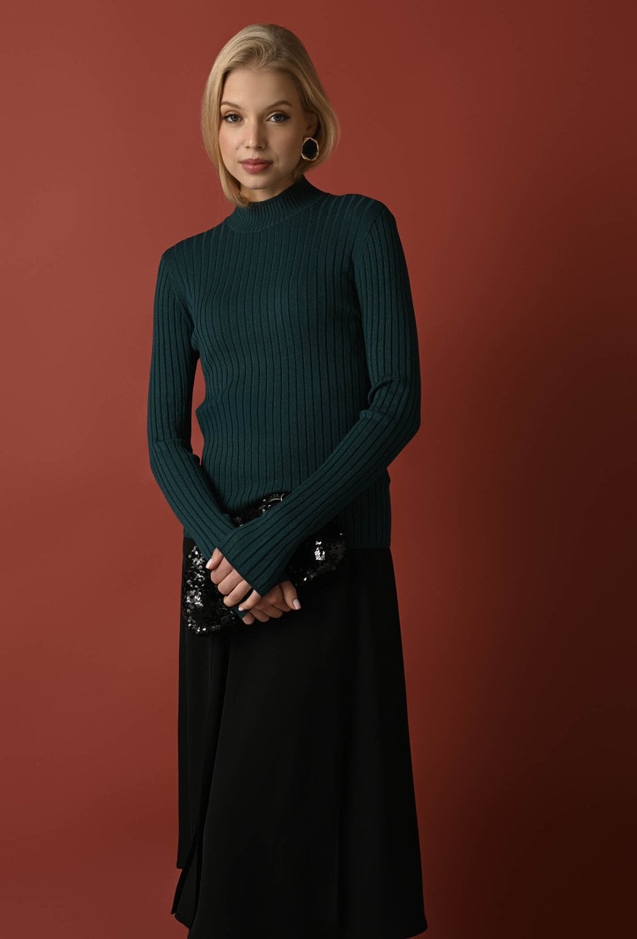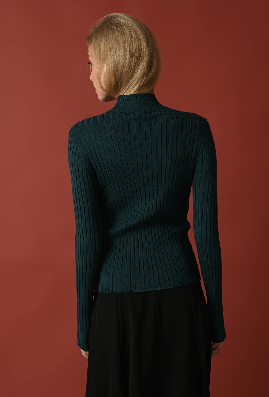Dopasowany golf z subtelnym prążkowaniem, to absolutny klasyk z charakterem — prosty, ale niezwykle efektowny element garderoby, który można interpretować na wiele sposobów. Klasyczny fason sprawdzi się jako uniwersalna baza wielu stylizacji – zarówno casualowych, jak i bardziej eleganckich. Komfortowy, ponadczasowy i łatwy do zestawiania z innymi elementami garderoby. Wykonany z przyjemnej w dotyku wiskozy. Modelka na zdjęciu ma 177cm wzrostu i prezentuje rozmiar 36.