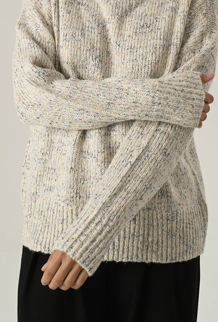 Miękki i przyjemny w dotyku sweter damski o klasycznym kroju, wykonany z efektownej melanżowej przędzy. Duży, otulający golf nie tylko chroni przed chłodem, ale też nadaje całości eleganckiego, swobodnego charakteru. Idealny wybór na zimniejsze dni – zapewnia komfort, ciepło i modny wygląd w jednym. Modelka na zdjęciu ma 177 cm wzrostu i prezentuje rozmiar 36/S.