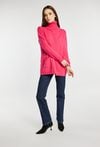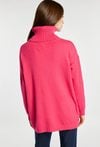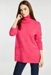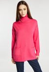 Sweter z długimi rękawami i wysokim golfem to ciepły, miękki model idealny na chłodniejsze dni. Sweter ma dłuższy, luźny fason, praktyczne kieszenie z przodu oraz szerokie, prążkowane wykończenia, które nadają mu przytulny i stylowy charakter. Modelka na zdjęciu ma 177 cm wzrostu i prezentuje rozmiar S/M.