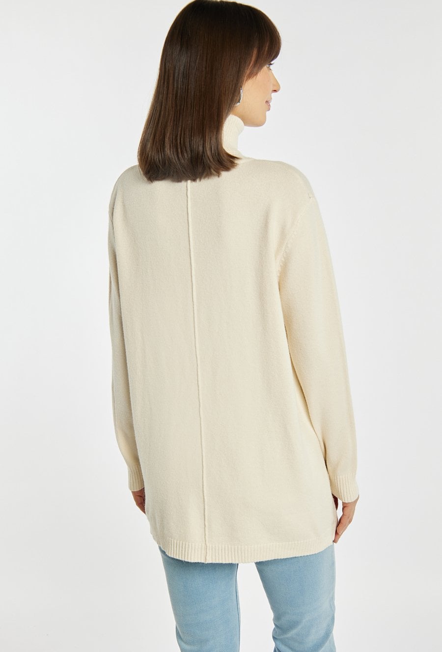 Sweter damski wykonany z przyjemnego w dotyku materiału. Sweter z długimi rękawami i golfem doskonale sprawdzi się w zimowe dni, zapewniając ciepło i komfort. Model dostępny jest w wielu wariantach kolorystycznych, co ułatwia dopasowanie go do własnego stylu. Modelka na zdjęciu ma 177 cm wzrostu i prezentuje rozmiar S/M.