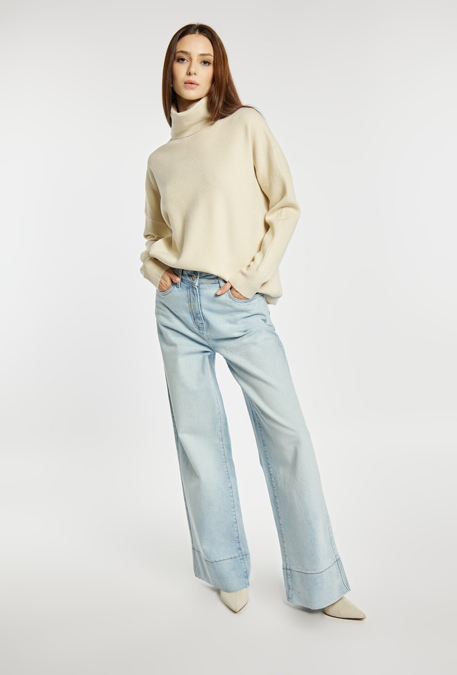 Sweter damski z luźnym golfem