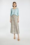 Prać w temperaturze 30 °C w delikatnym cyklu z podobnymi kolorami. Nie wybielać i nie chlorować. Prasować w temperaturze maksymalnej 110 °C po lewej stronie lub przez bawełniane płócienko. Nie czyścić chemicznie. Suszyć na płasko po wcześniejszym uformowaniu odzieży. Nie suszyć w suszarce bębnowej. Prać wywrócone na lewą stronę. Ozdobny element zdjąć do prania. Efekt pilingu, mechacenie i zaciąganie są typowe dla tego typu wyrobu i stanowią zjawisko naturalne wynikające z rodzaju zastosowanego włókna oraz struktury materiału.