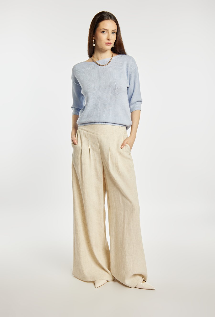 Szerokie spodnie z dodatkiem lnu