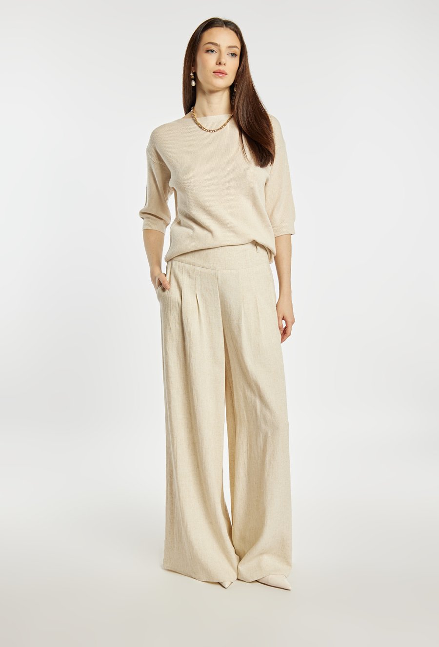 Szerokie spodnie z dodatkiem lnu
