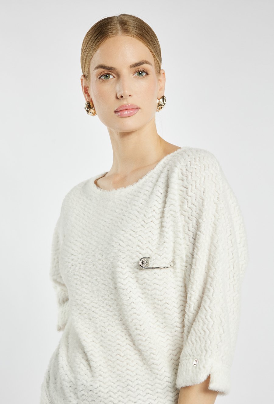 Sweter z ozdobną agrafką