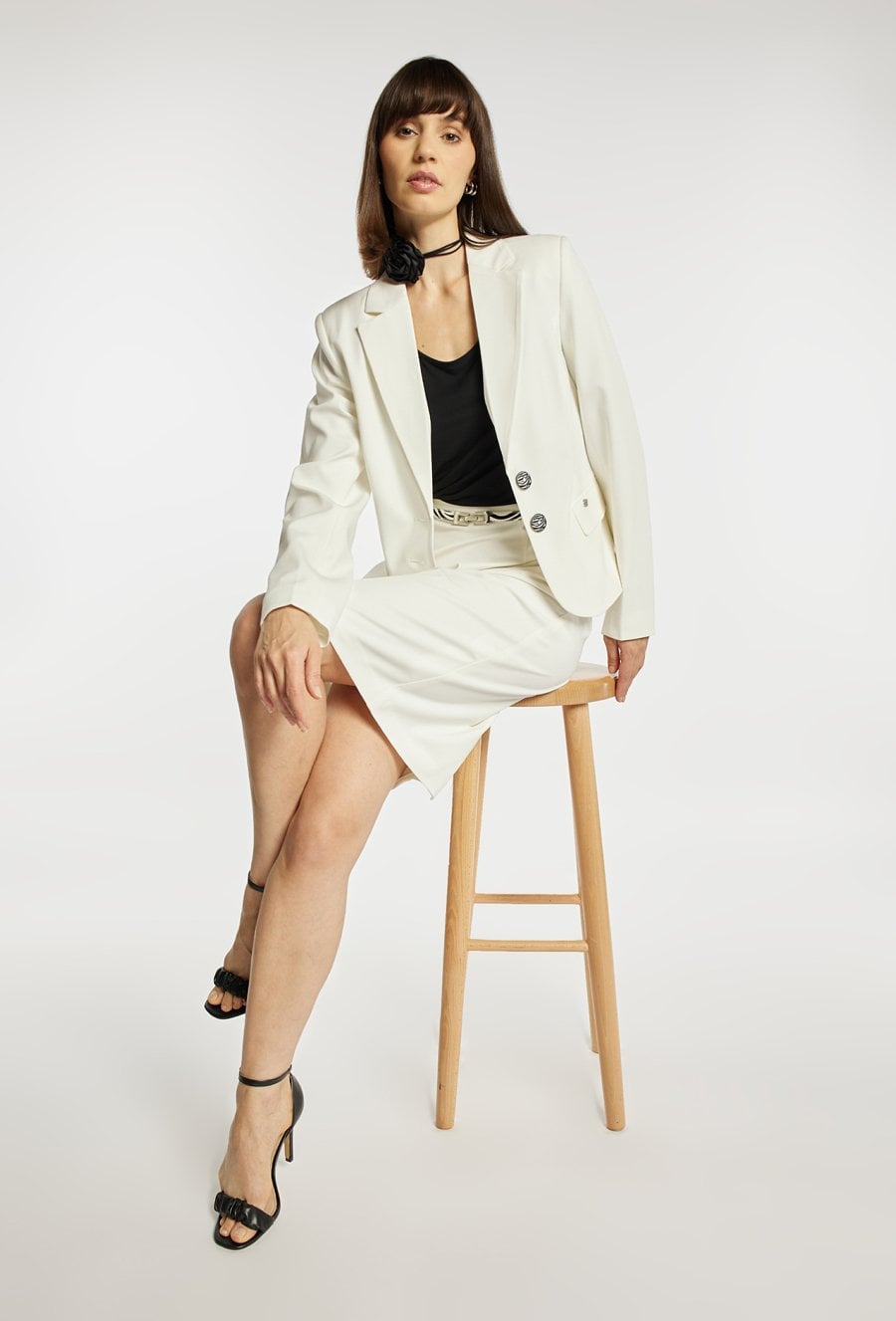 MATERIAŁ GŁÓWNY: 64% POLIESTER, 31% WISKOZA, 5% ELASTAN; PODSZEWKA: 100% POLIESTER; PODSZEWKA: 97% POLIESTER, 3% ELASTAN